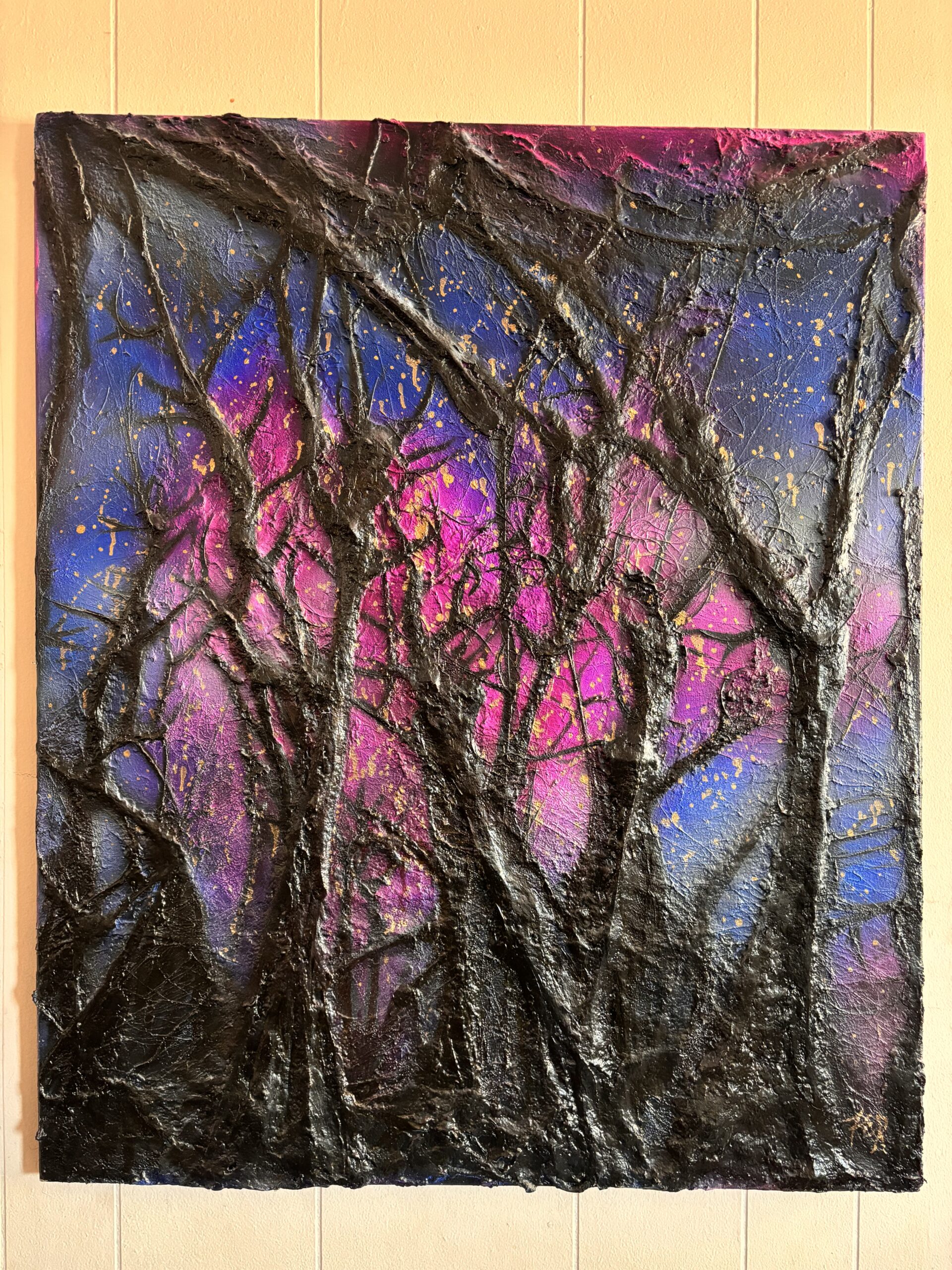 Her love of animals and nature inspires much of her bold paintings. With a background in dance, special effects makeup, woodworking and fine arts, Faith believes art can happily bring people together. Much of her creativity is brightly captured on canvas, however, those four stretcher bars are never the limit.