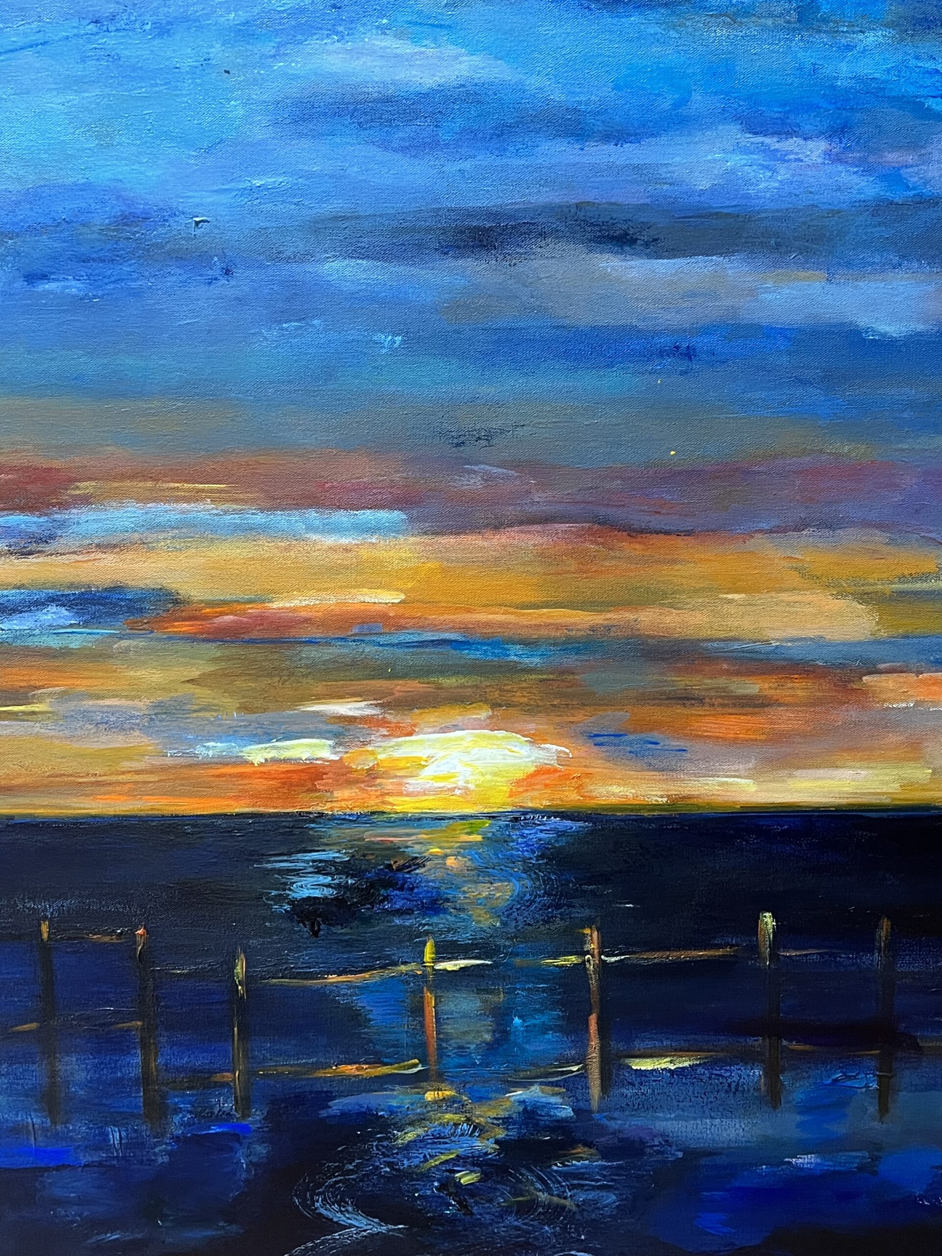 Karen Roodman is a true creative and intentional artist. Her background in dance, Pilates, and education in both the arts and sciences has influenced her expressive work. A native to the Midwest but RVA resident for over 30 years, she is an active painter at both Crossroads Art Center and the VMFA Art School. She loves using nature, cities, and figures in her unique pieces. Her use of shapes, perspective, color relationships, and overall expressiveness are an extension of her personality and intentionality as an artist. You will find Karen’s artwork in restaurants, offices, libraries, and studios. Please contact Karen for commission work to create a custom piece for you. Visit her website: karenroodman.com for a full overview of her available pieces for sale.